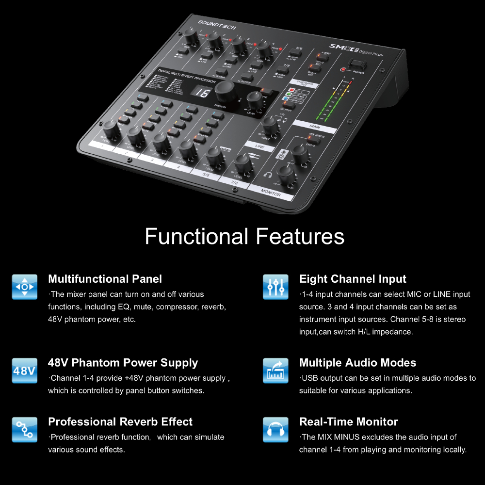 Audio Mixer Digital SOUNDTECH SMIX 8.0 with 8 Channel