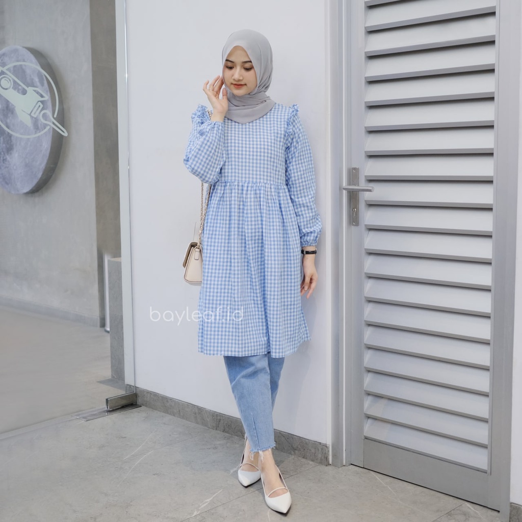 Bayleaf.id Fabyla Plaid Tunik Lengan Panjang / Atasan Tunik Wanita Motif Kotak