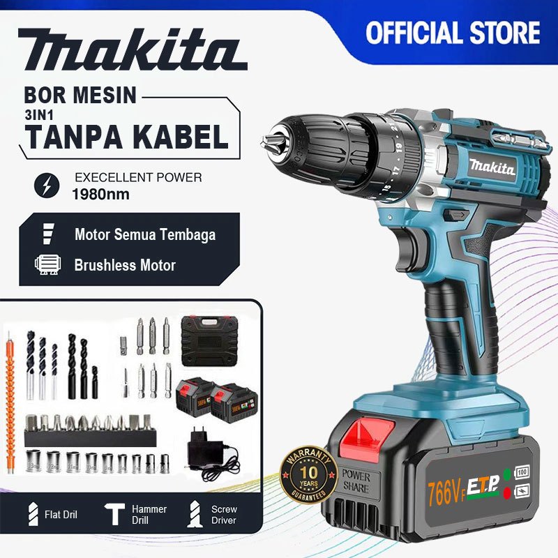 MAKlTA 388V Mesin Bor Cordless/Bor Baterai/ Bor Listrik/Beton Besi Kayu Baterai Tangan Cordless Drill Battery impact dri