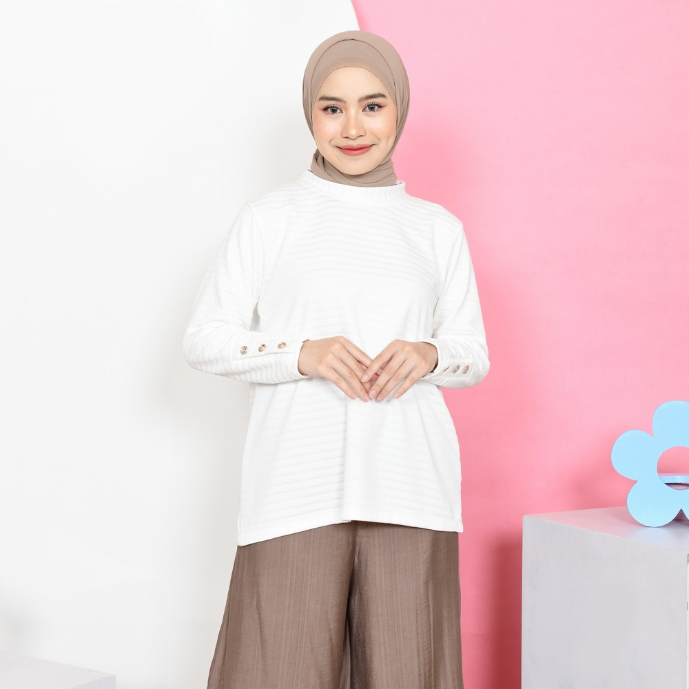 Mybamus Abya Knit Tops - Atasan Lengan Kancing - Manset Kancing Emas