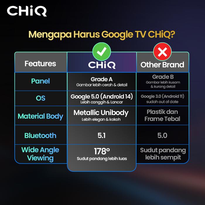 CHIQ Changhong C32MT1 Google TV 32 inch FHD - Google Assistant Perintah Suara Remote, HDR10, App Store, Dolby Audio