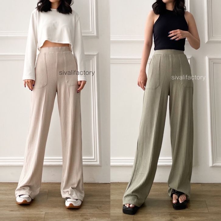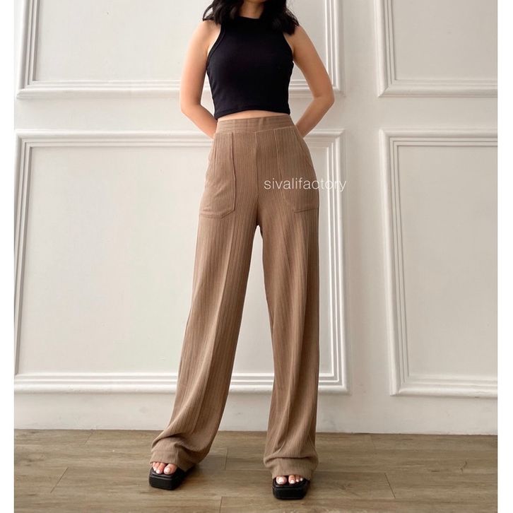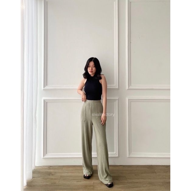 Celana Kulot Knit Highwaist Kulot Pants Celana Wanita