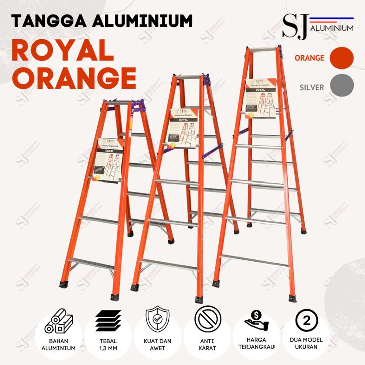 Murah ROYAL ORANGE - Tangga Aluminium Lipat Orange Jumbo Aluminium Ladder Multifungsi - Tahan Beban 250 KG Elegan