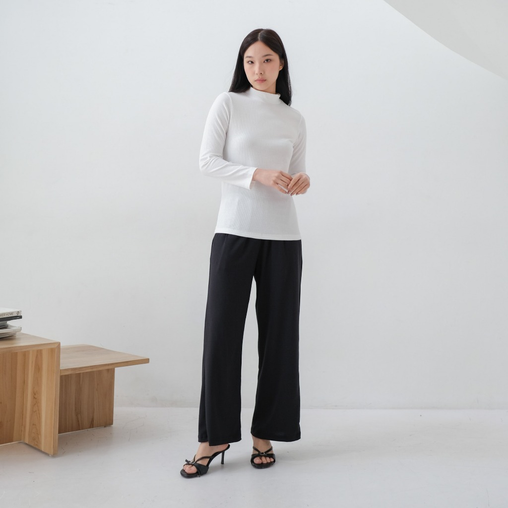 Isla Basic Inner Kerah Tinggi - Inner Texture - Manset Kaos - Inner Wanita Lengan Panjang - Atasan - Kaos