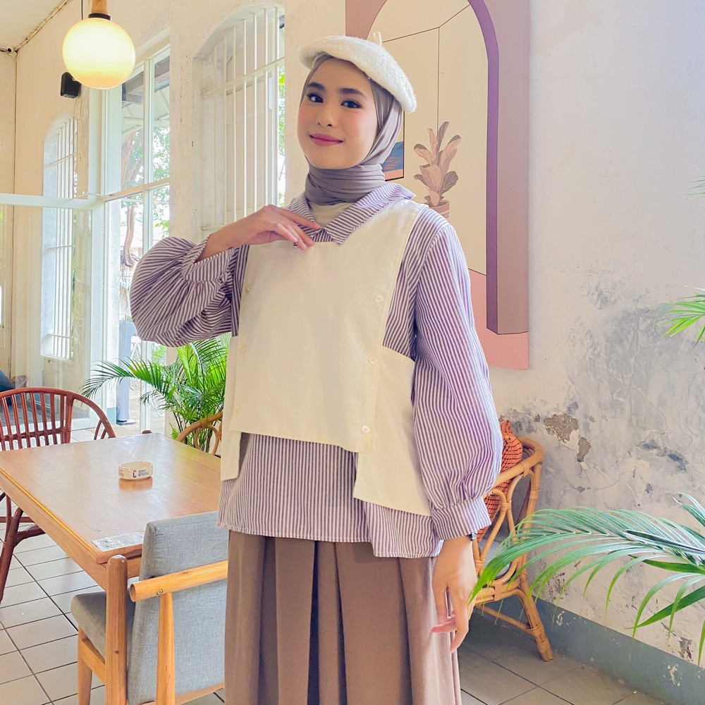 Mybamus x Rahma.nura - Ohana Stripe Blouse – Kemeja Lengan Panjang – Ootd Tops Kekinian