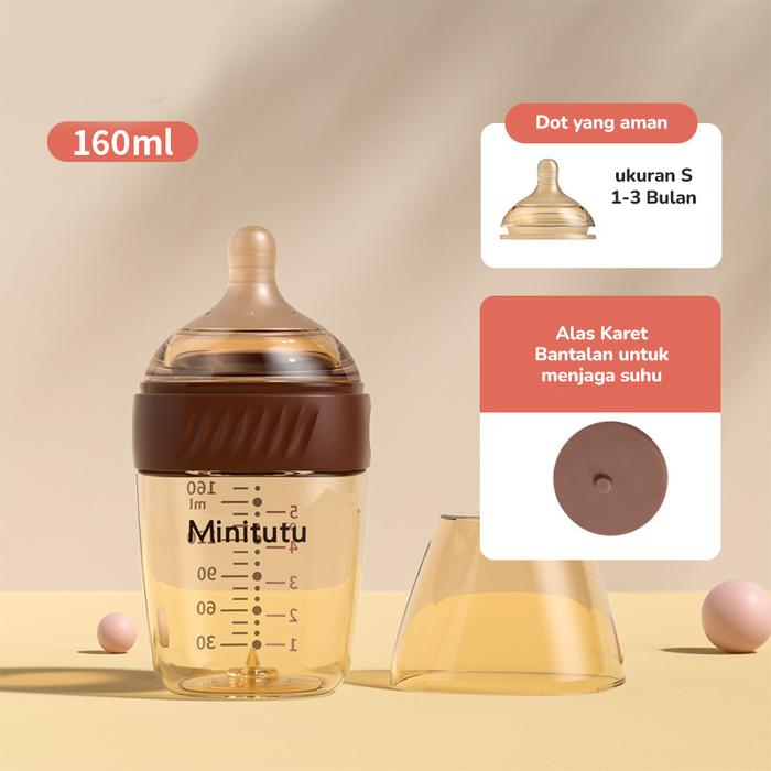 Minitutu Botol Susu Bayi PPSU dengan Skala Suhu Botol Susu Anti Kolik BPA Free BB26 - 160ml