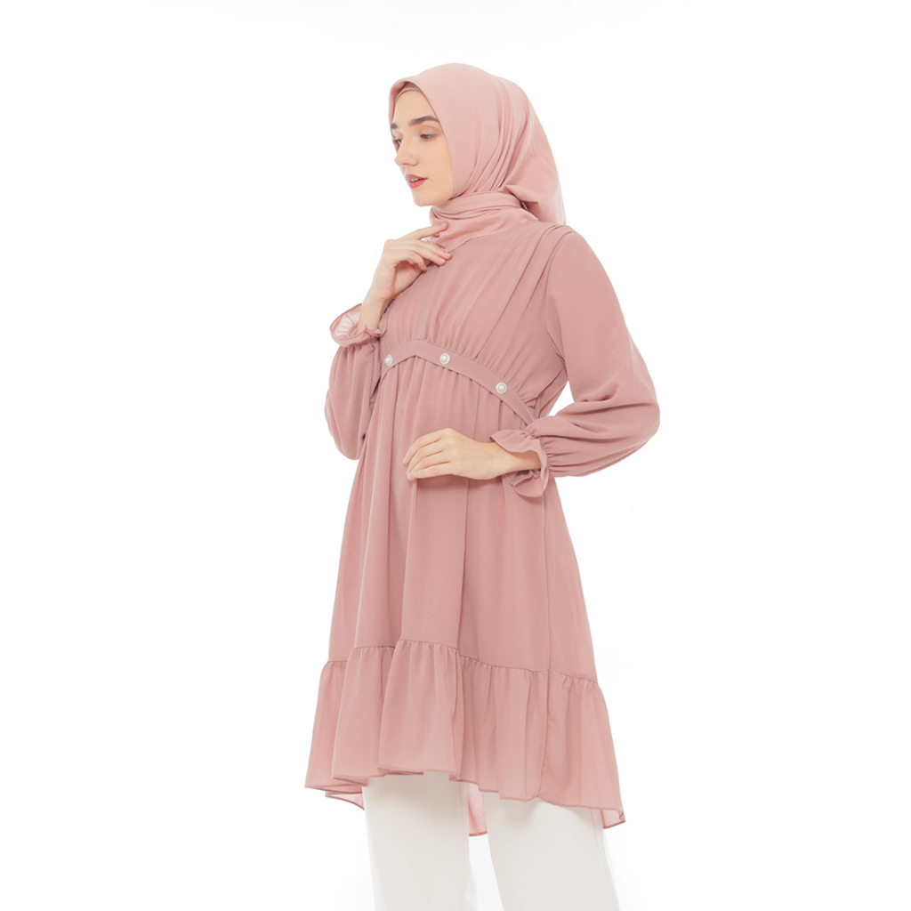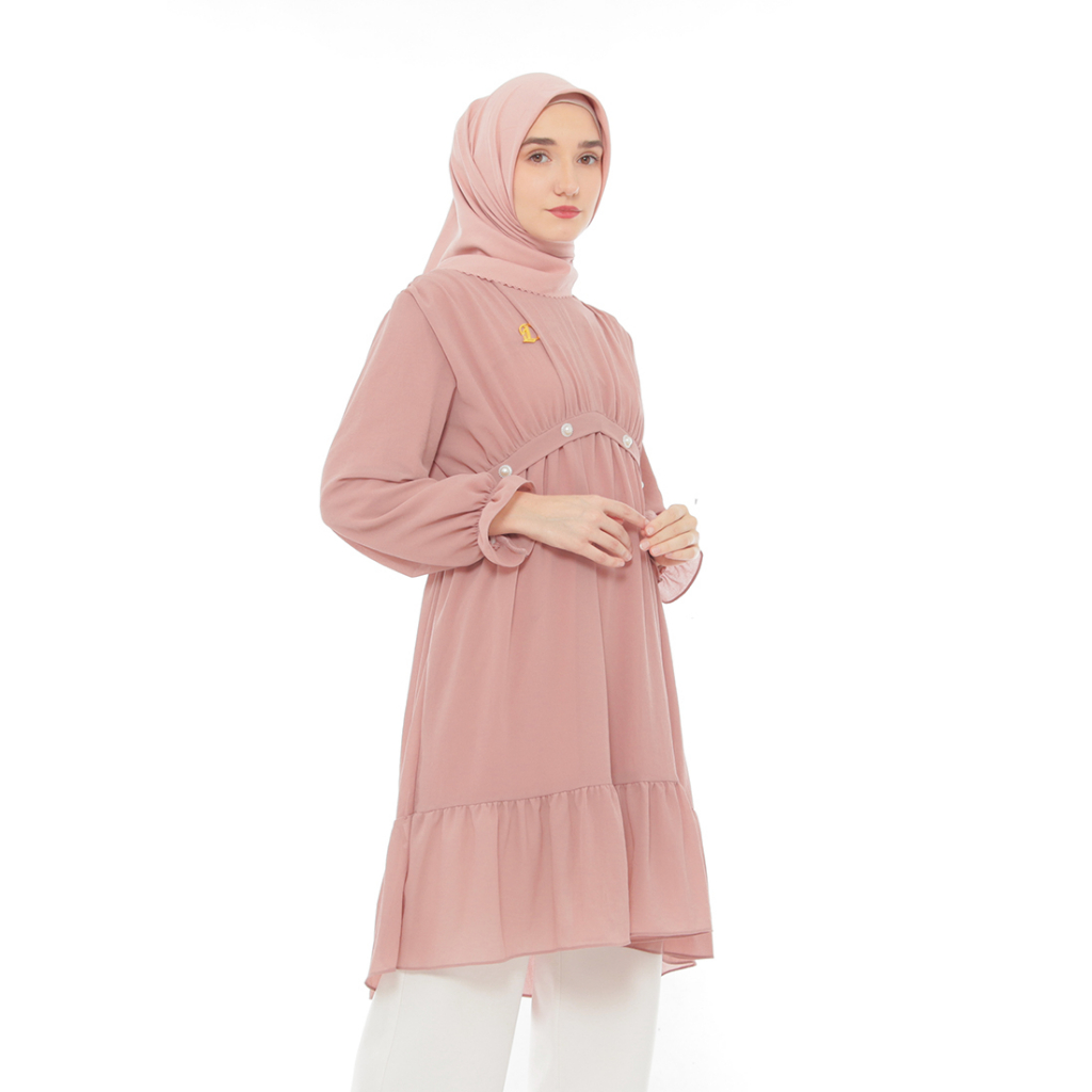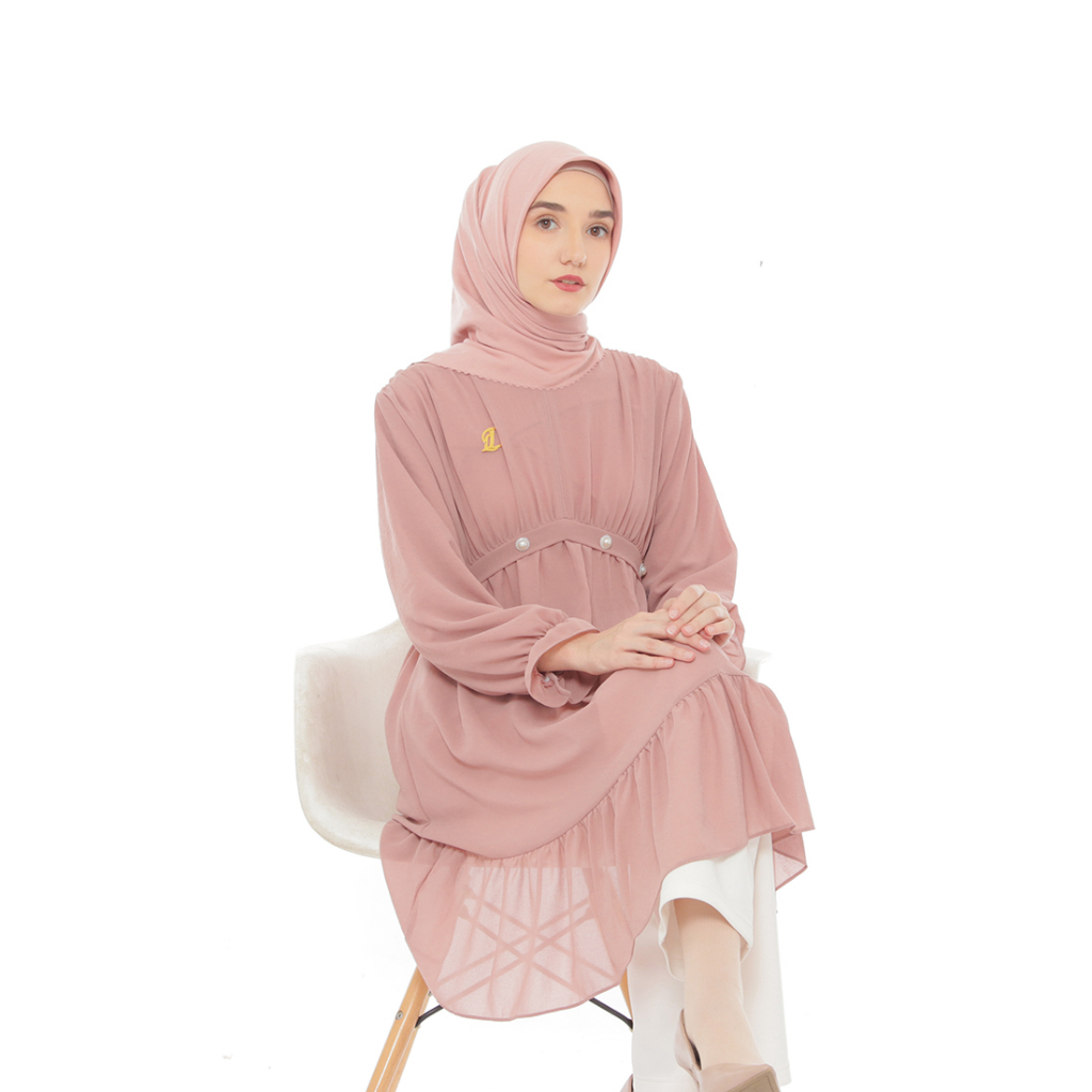Dzellia - Gracia Tunik Atasan Wanita muslimah atasan bahan nyaman CERUTY PREMIUM (PEACH - L-XL-XXL)