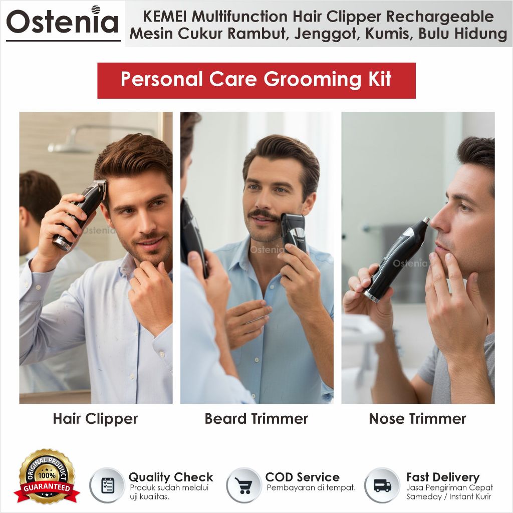 KEMEI Alat Cukur Rambut Elektrik Multifungsi Mesin Cukur Jenggot Kumis dan Bulu Hidung Baterai Cas