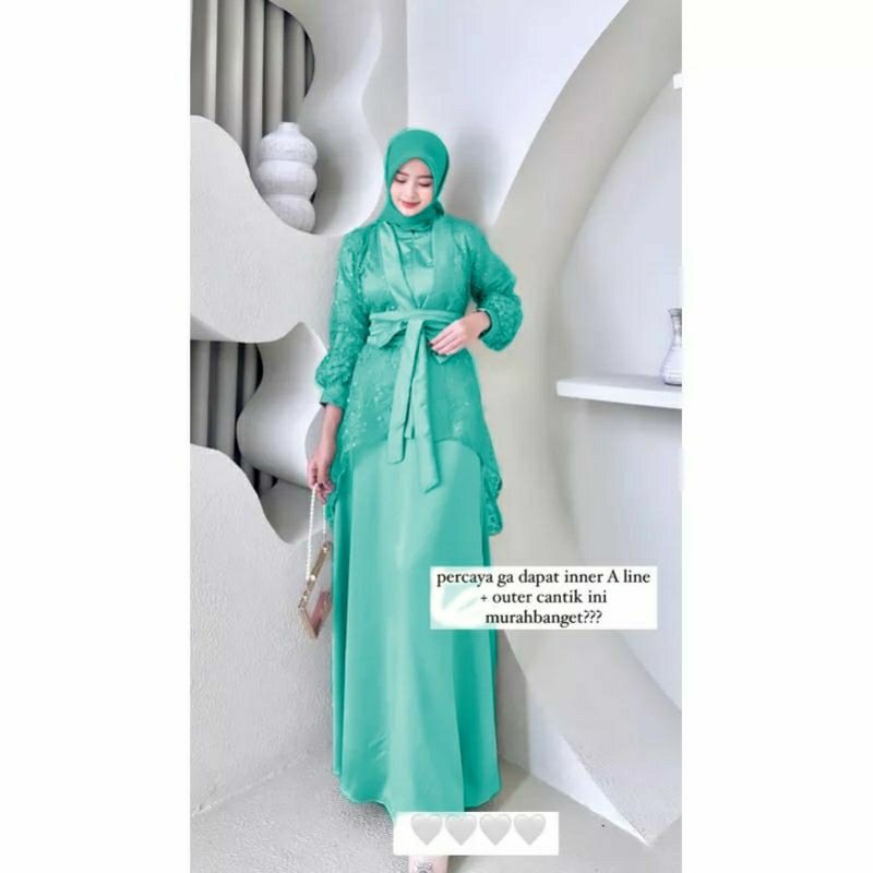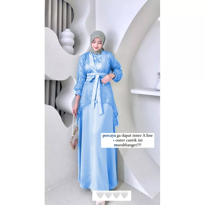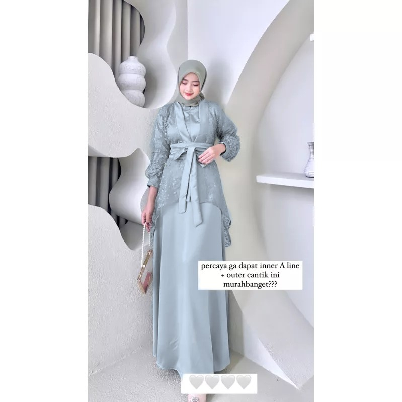 Fuji Dress satu Set Inner Outer Kimono Queenbee Fashion Gamis Muslim Wanita Pesta Kondangan Bridesmaid Wisuda Brokat Tile Bordir Motif