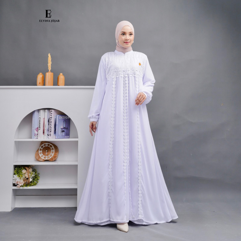 GAMIS CERUTY PUTIH BERSIH LUCY DRESS (Bisa untuk UMROH dan HAJI)