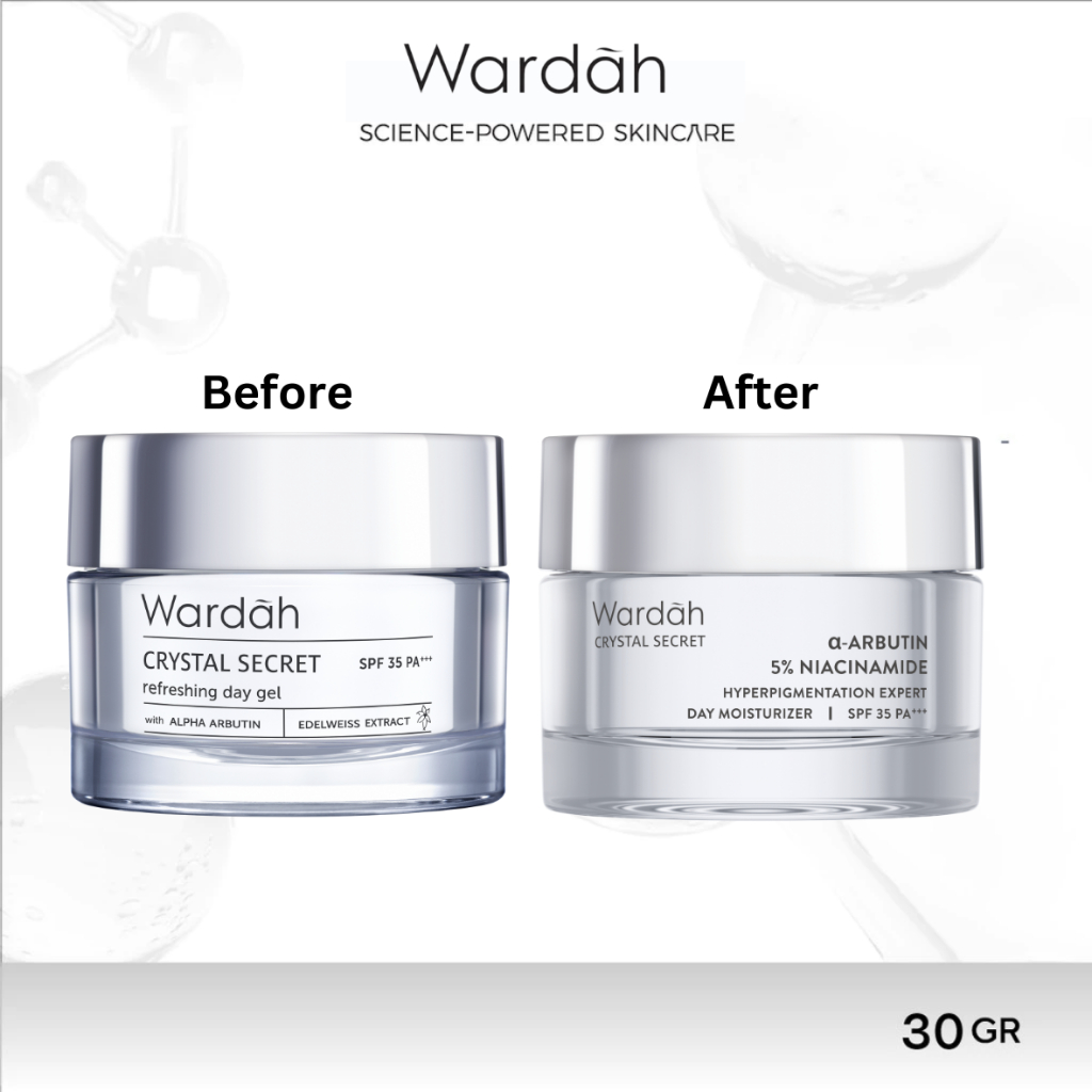 Wardah Crystal Secret Paket Cleanser, Essence, Toner, Serum, Day Cream, Night Cream