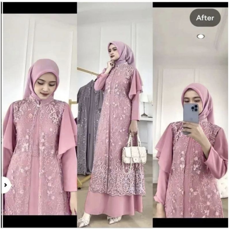 Georgina Dress Lebaran Kondangan Inner Belt Outer L XL XXL Premium Jumbo Mewah Gamis Muslim Produk Terbaru Marun MIlo Taro Coksu