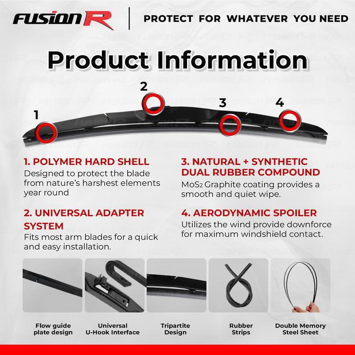 Wiper Mobil Hybrid Blade Fusion R Premium Ukuran 14"–26" (Tersedia 14 16 18 19 20 21 22 24 26 Inch) - 14
