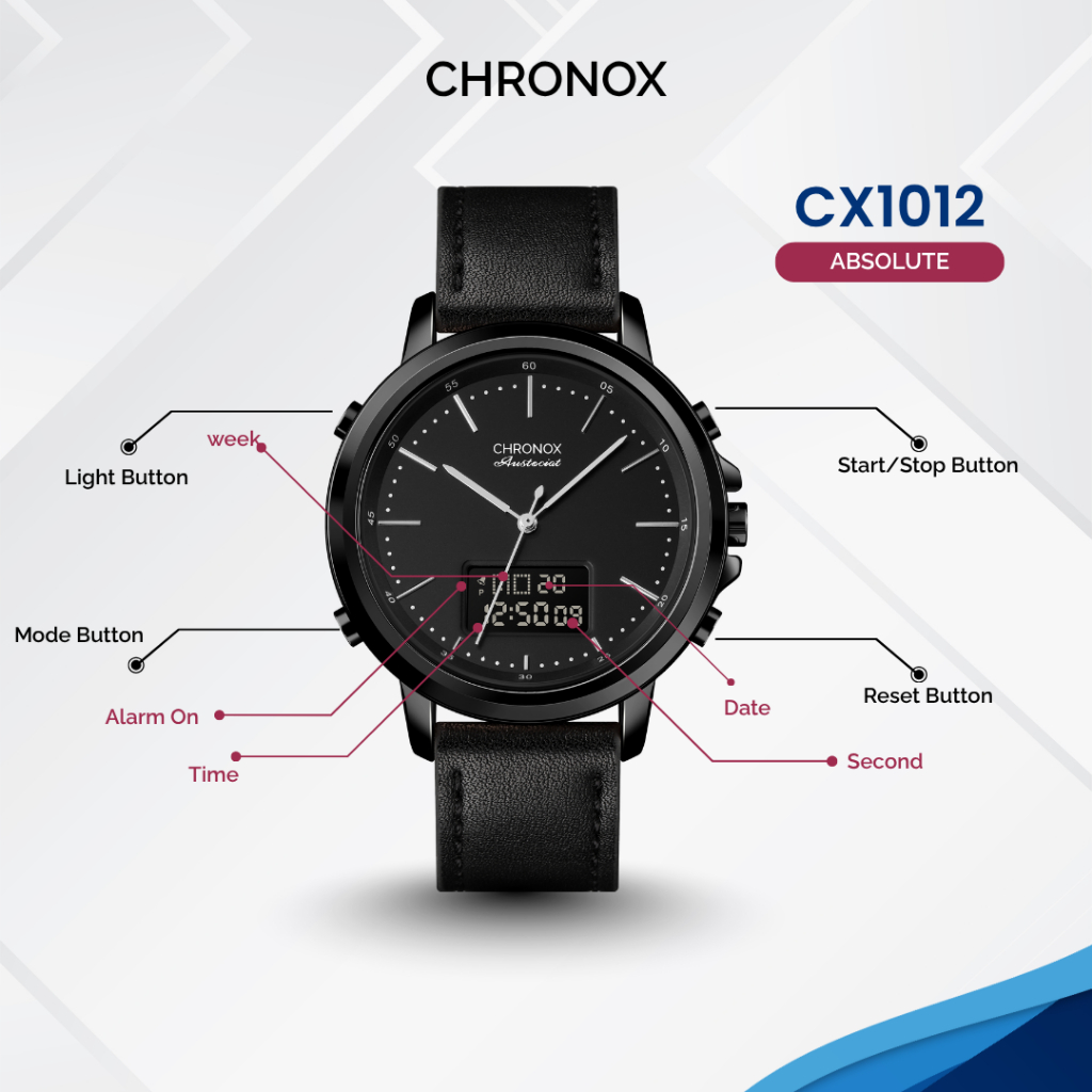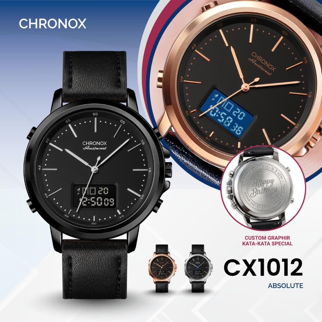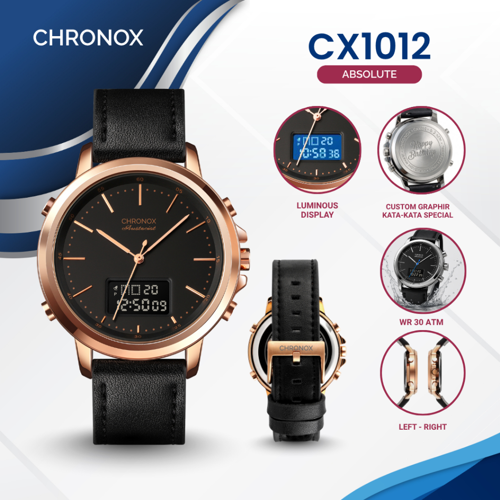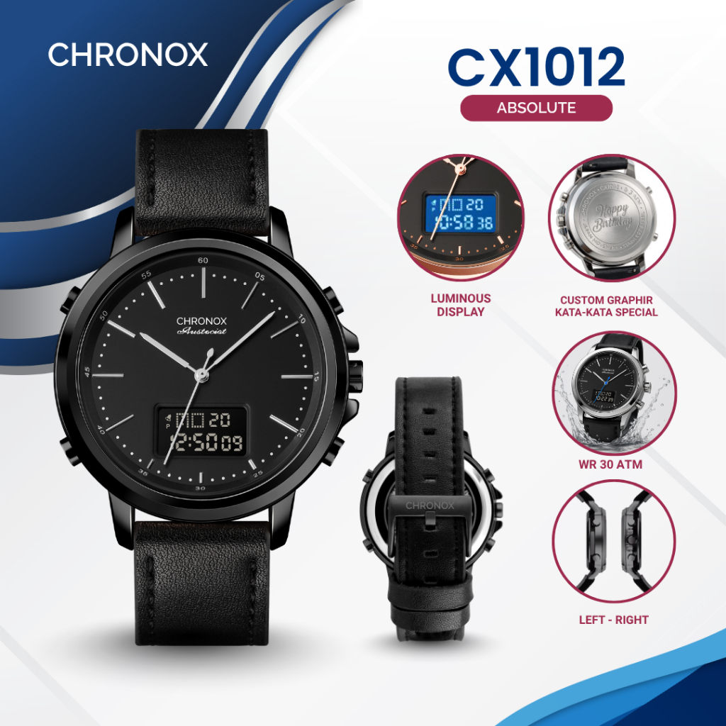CHRONOX Jam Tangan Pria Kulit Analog Digital - CX1012 ABSOLUTE [Baca Deskripsi]
