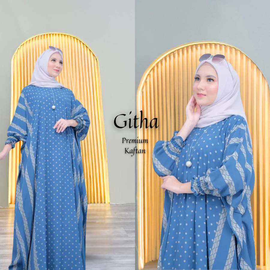 Terbaru Gamis Kaftan Jumbo Motif Githa Adem Cocok untuk dirumah atau untuk Pengajian