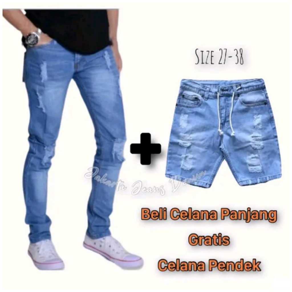 (PAKET HEMAT ISI 2PCS)Beli 1 Gratis 1 Celana Pendek-Celana Jeans Pria Motif Sobek-Celana Panjang Cowok Terlaris-Celana Pendek Motif Robek Broshut Pria Shorts Distro