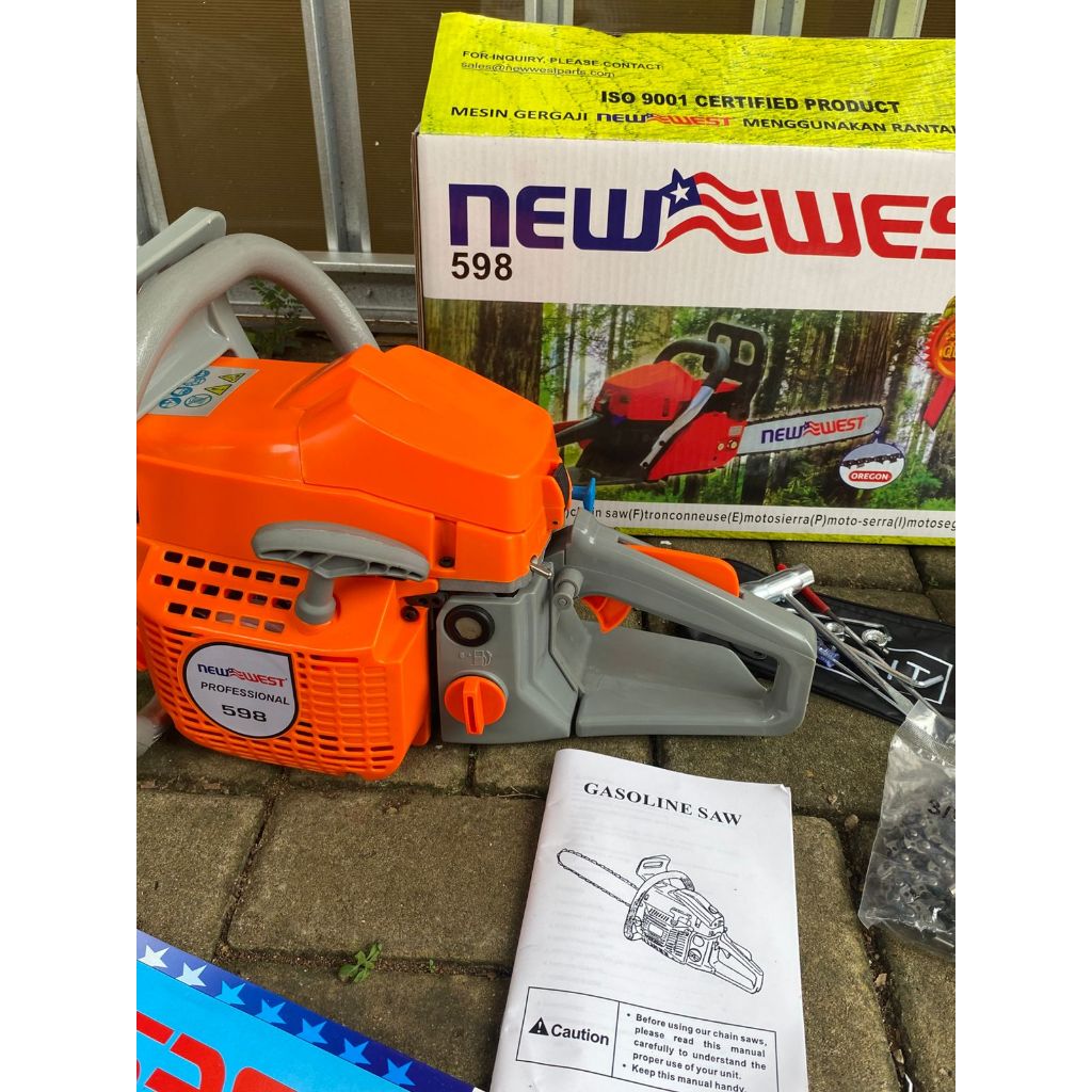 TERMURAHH!!!! MESIN POTONG KAYU CHAINSAW NEW WEST 598 22" CHAINSAW, SIAP KIRIM KE LUAR PULAU NEW WEST ORIGINAL FULLSET P