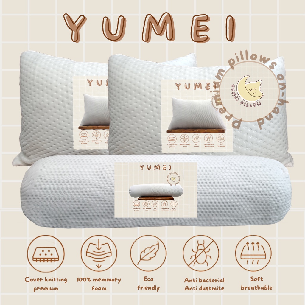 Paket 2 Bantal + 1 Guling Hotel Premium Memory Foam Empuk Yumei 60x40cm | BEST DEAL