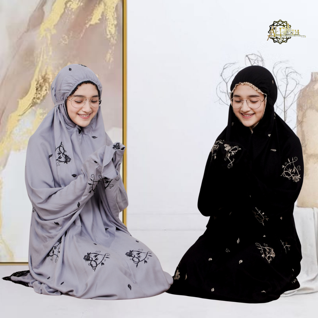 ALFATH714 - Mukena Terusan Dewasa Bordir Bunga Rose Love Mukenah Lajuran Dewasa
