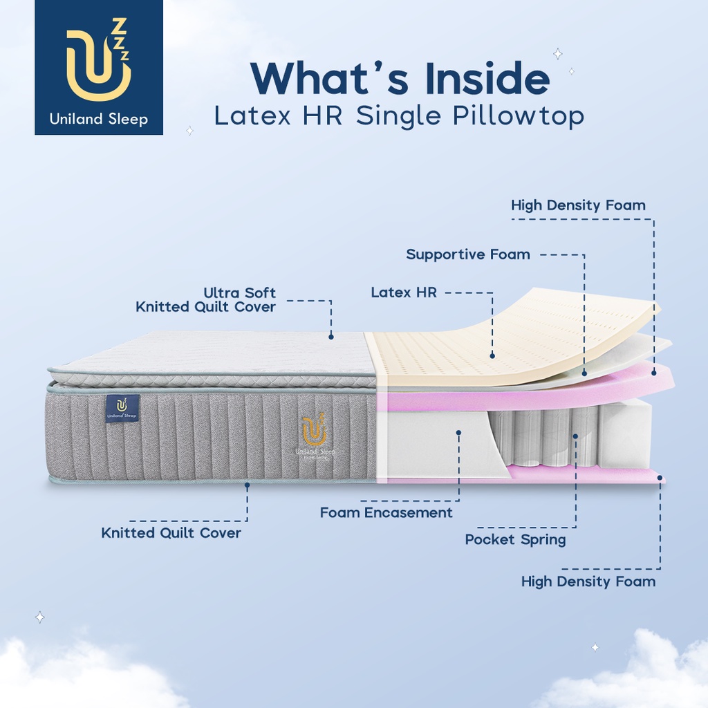Uniland Sleep Kasur Pocket Spring Latex HR Single Pillowtop 30cm