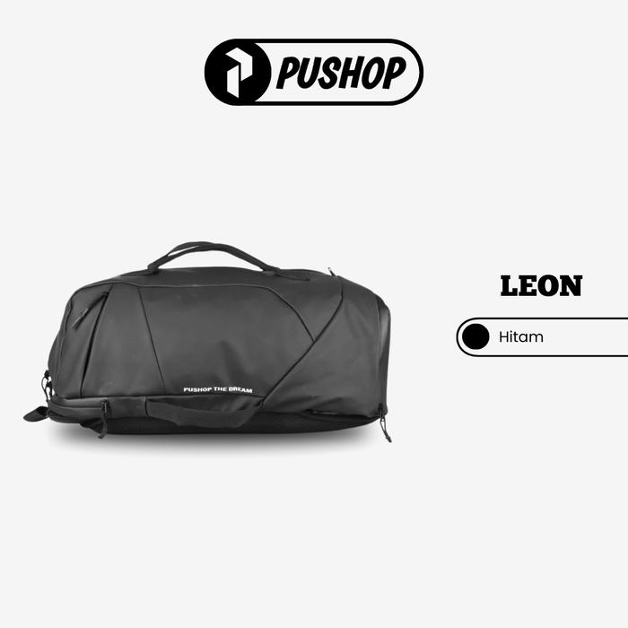 Tas Duffel Pria LEON - Tas Mudik Waterrpoof 2 in 1 Bisa Ransel Anti Air Polos Hitam Travel