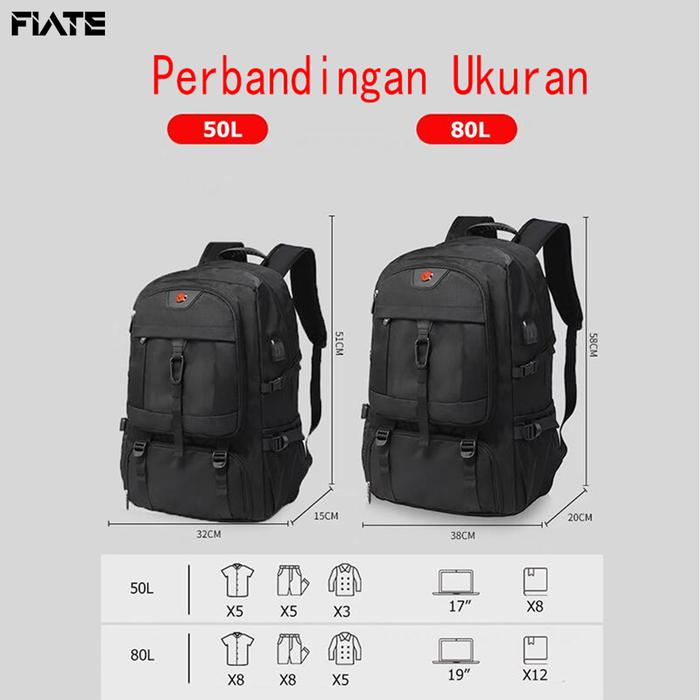 FLATE Tas Ransel Traveling 50-80Liter Multifungsi Pria Luar Ruangan Tahan Air Tas Gunung Mudik