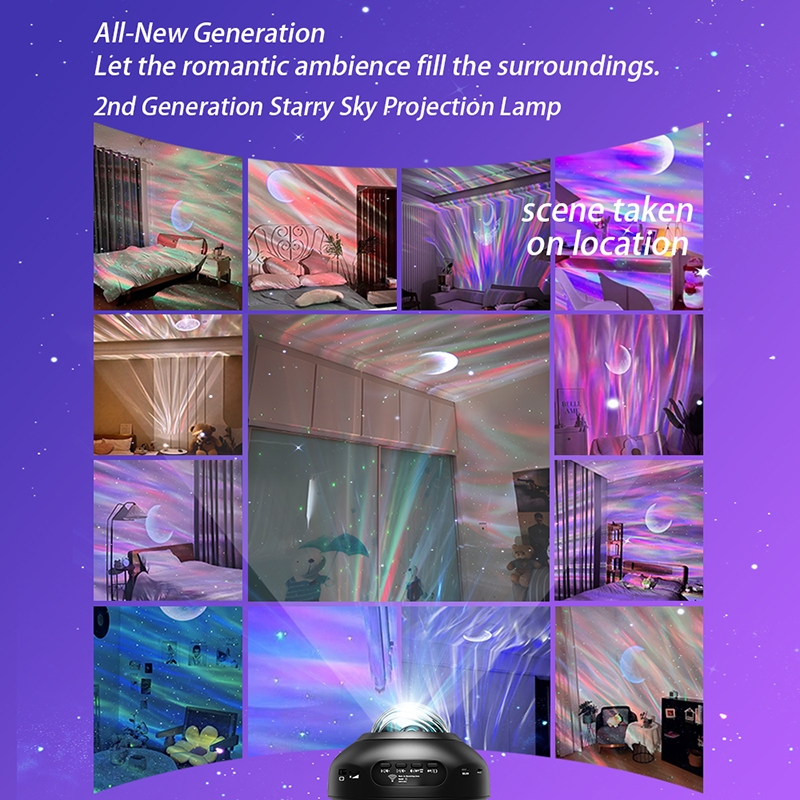 Proyektor LED Aurora Galaxy Model Terbaru, Speaker Bluetooth 32 Warna dengan Musik & Lampu Malam Bintang