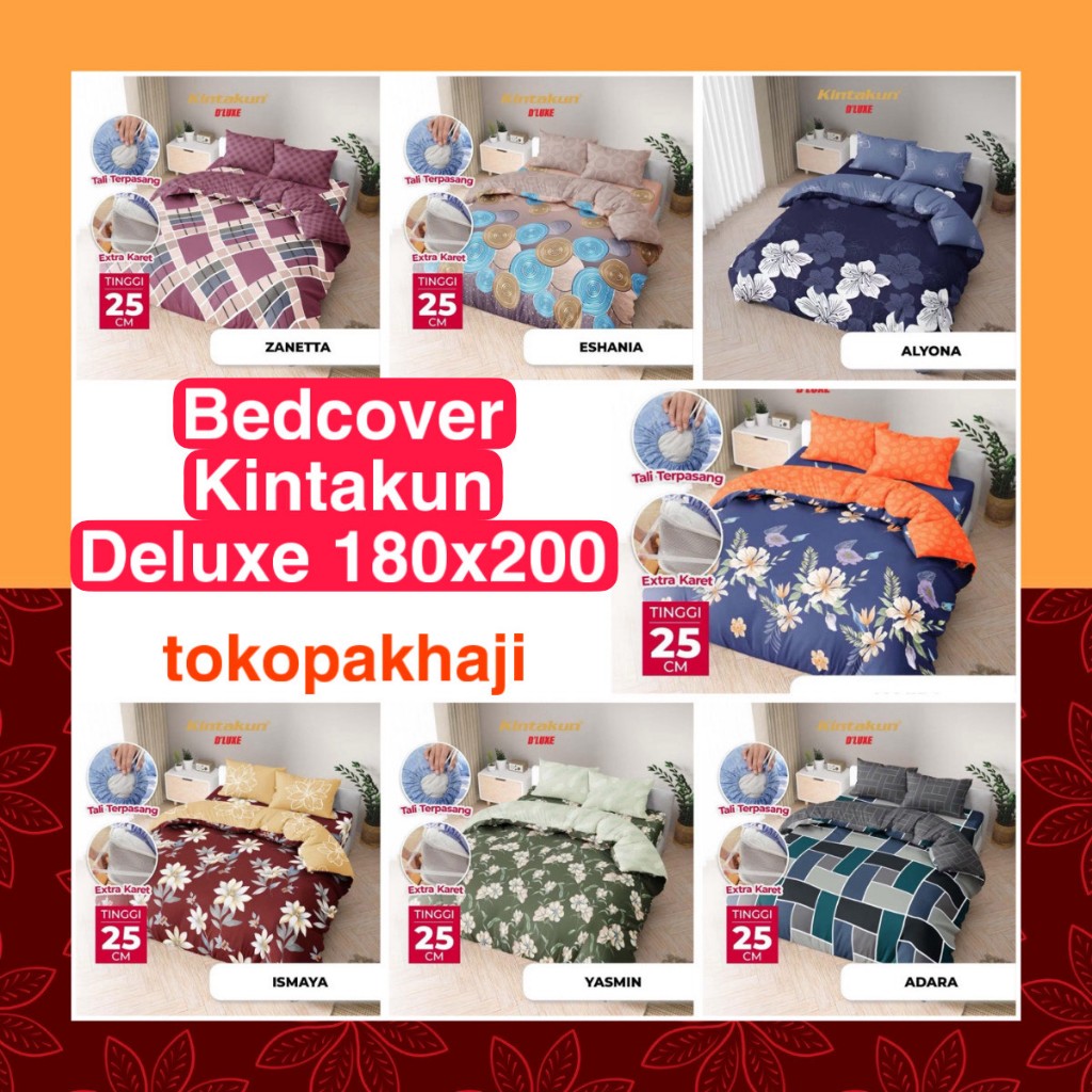 BEDCOVER KINTAKUN DELUXE SET SPREI FLAT TIDAK RUMBAI 180x200