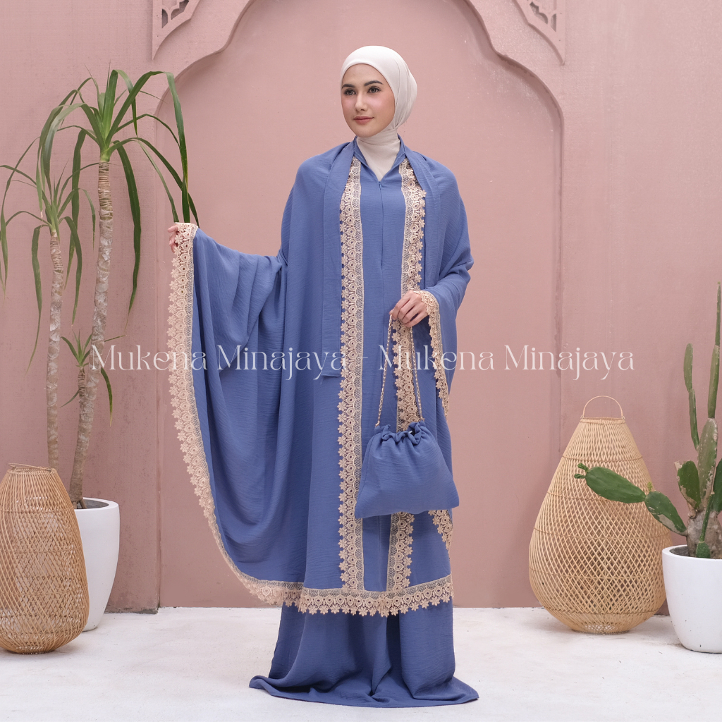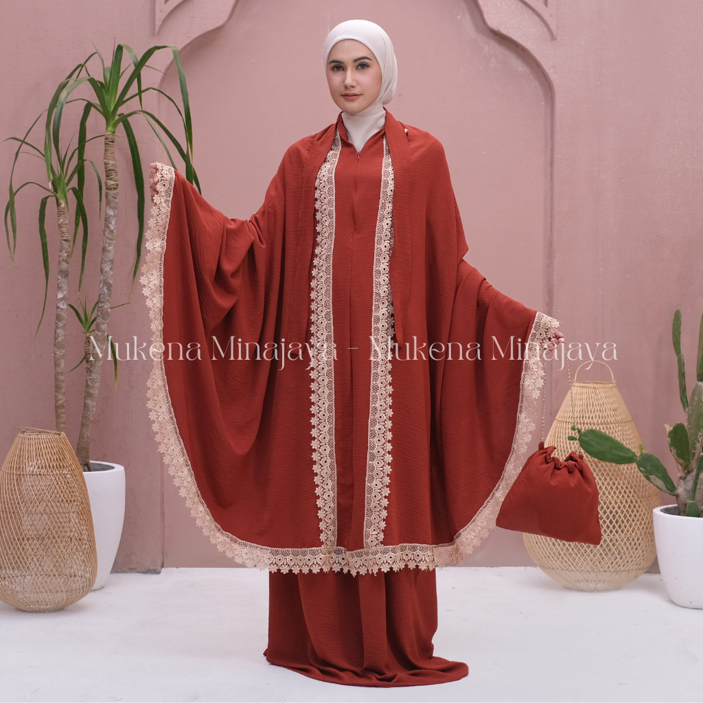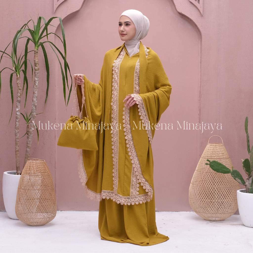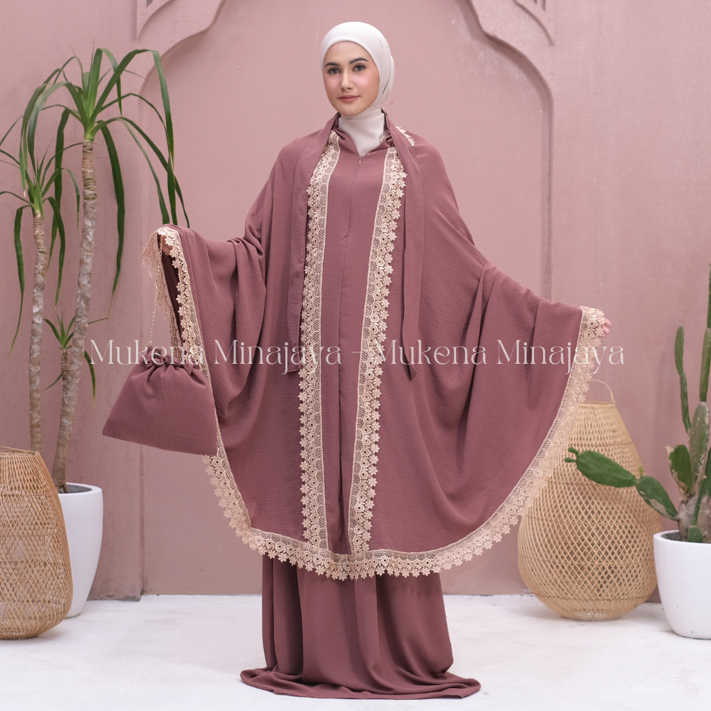 MINAJAYA - Mukena Lesti Dewasa 3IN1 Renda Traveling Bahan Crinkle Airflow