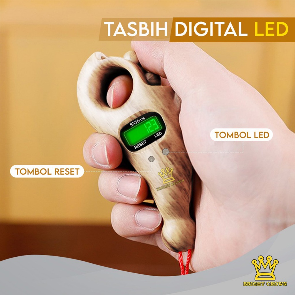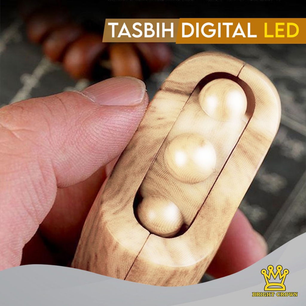 Bright Crown LED Muslim Tasbih Digital Kayu Manik Alat Hitung LED Digital Tasbih Premiun Original