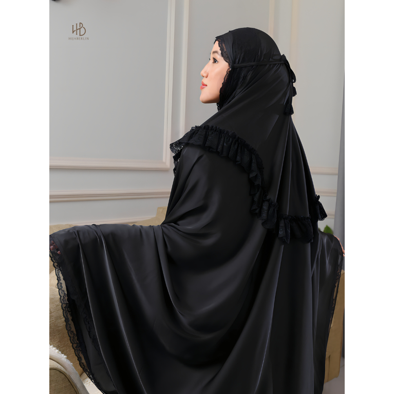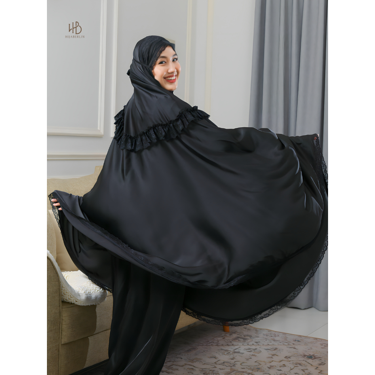 HIJABERLIN - Faiza Prayer Set Black - Mukena Artis Premium Silk Mahar Mewah Exclusive Haji & Umroh