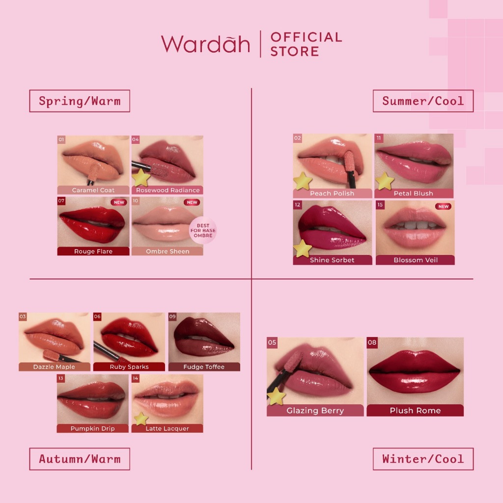 [Mall] [NEW SHADES!] WARDAH Glasting Lip - Hi-Pigmented Glass Color, Ringan, Tidak Lengket, Transferproof Liptint