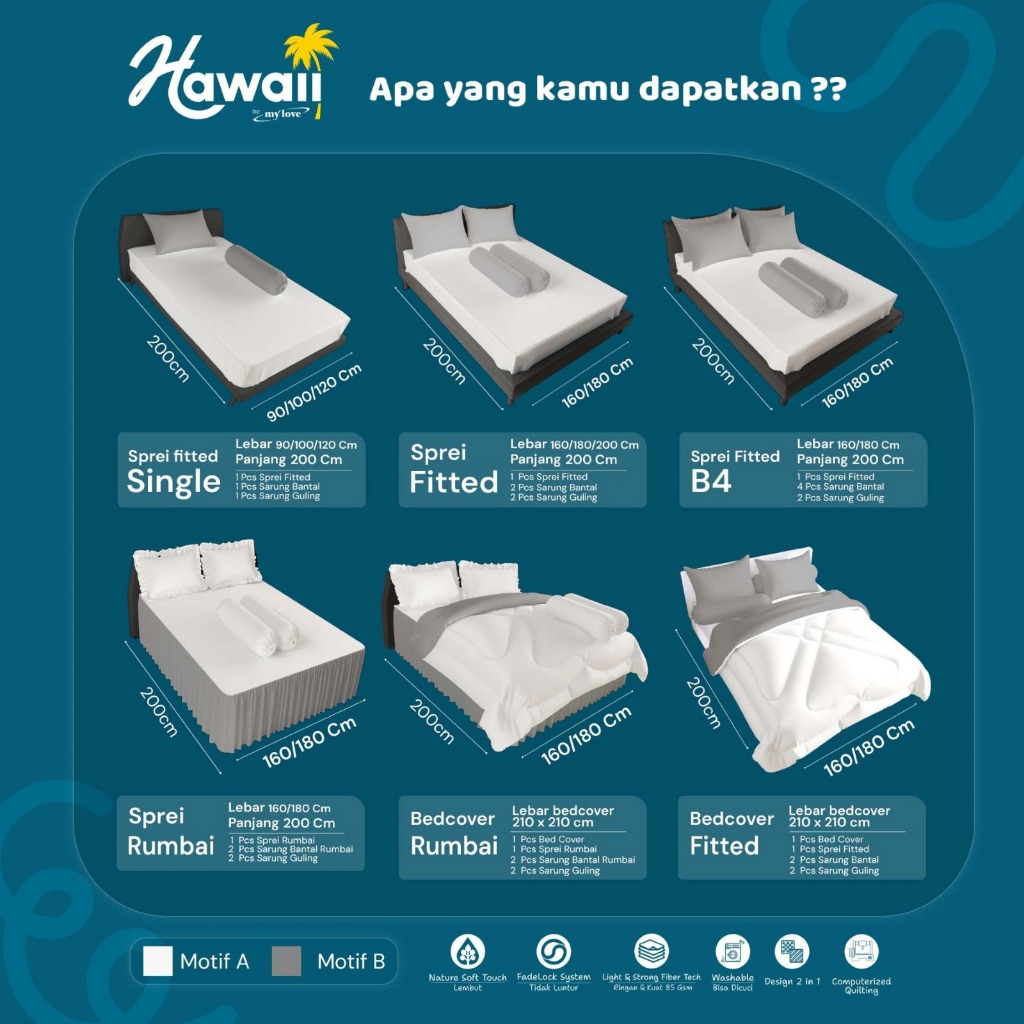 HAWAii Bedcover set Sprei Fitted Motif Ukuran King 180x200 Sprei Bed Sheet No 1