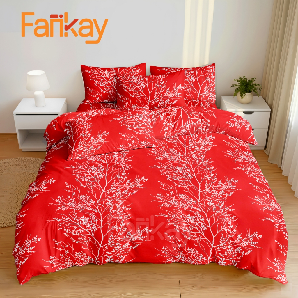 Bed Cover Set Sprei Jeju Red Ukuran Lengkap 180x200/160x200/120x200 - Fankay Bedcover