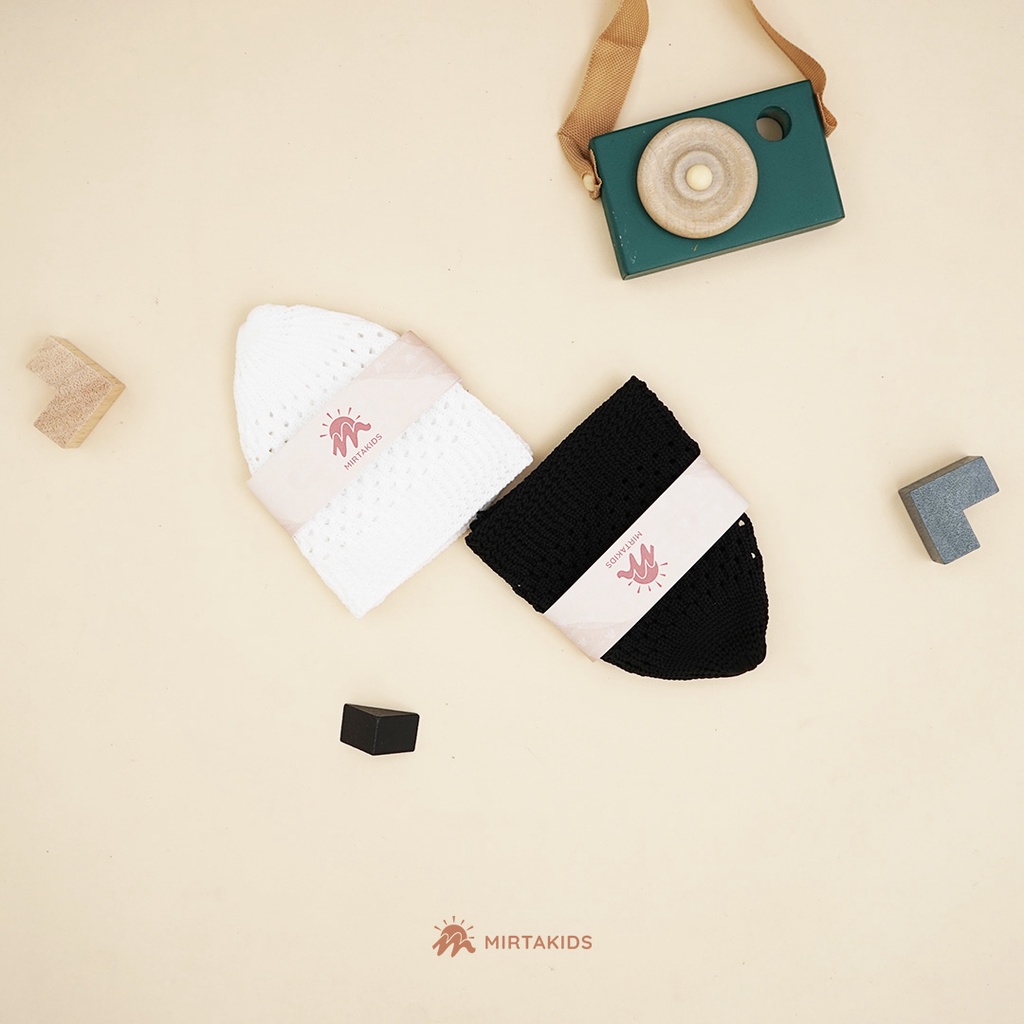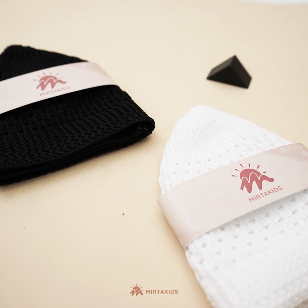 Mirtakids Peci Rajut Putih Hitam Anak (4 Bulan - 5 Tahun) | Katun Rajut