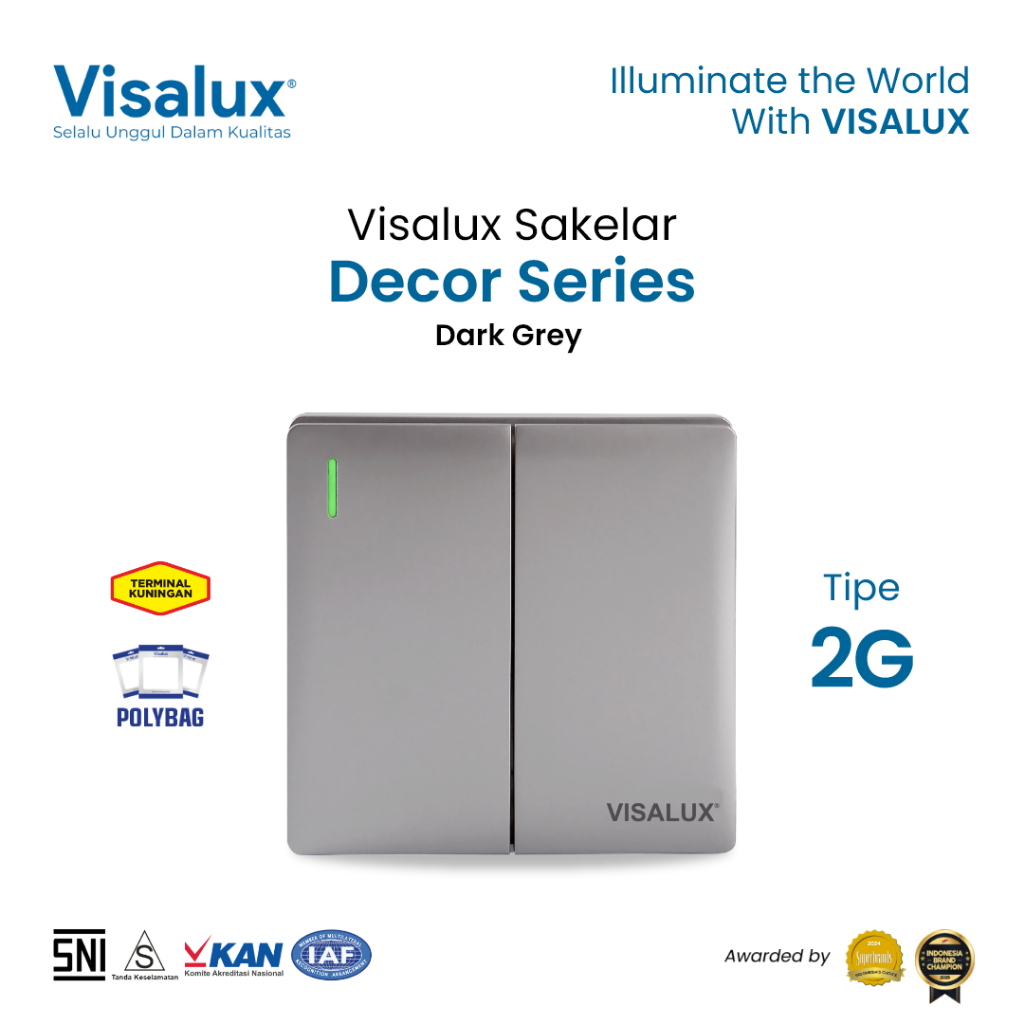 Visalux Saklar Decor Series - 2G Dark Grey / Sakelar Premium (VSD1021-DG)
