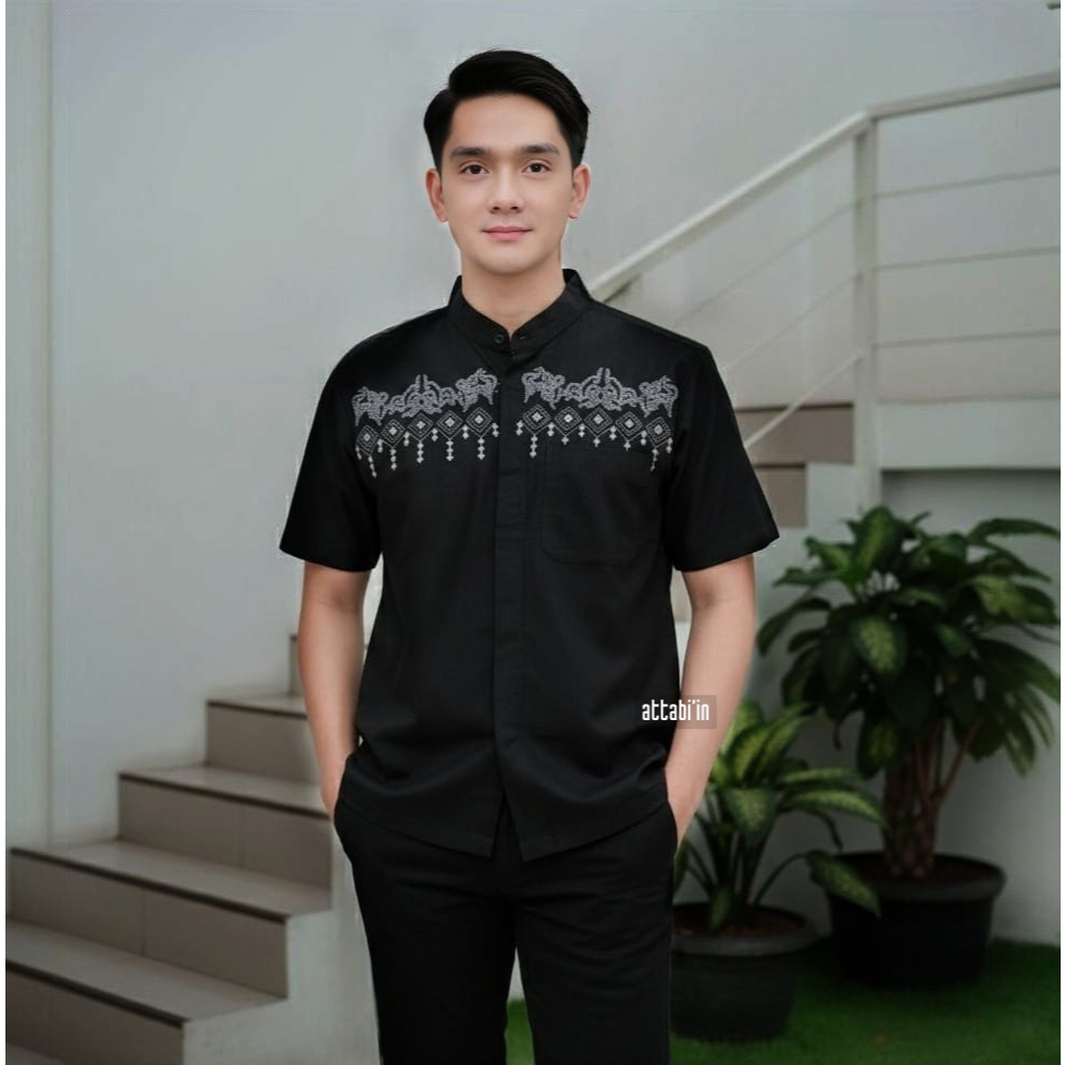 Attabiin Baju Koko Pria Dewasa Bordir – Koko Lengan Pendek Katun Premium Terbaru