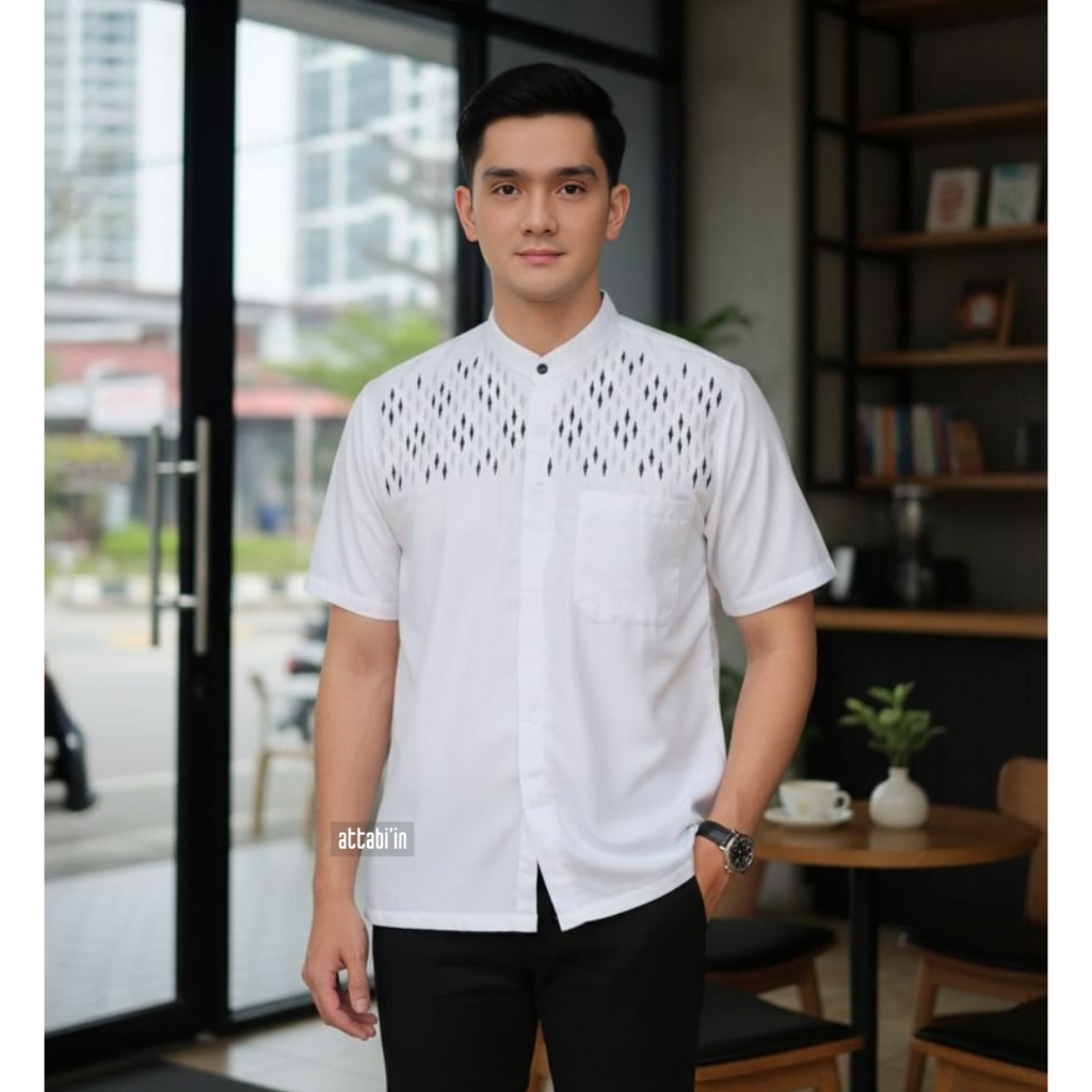 Baju Koko Pria Dewasa Muslim Putih Premium Bordir Katun
