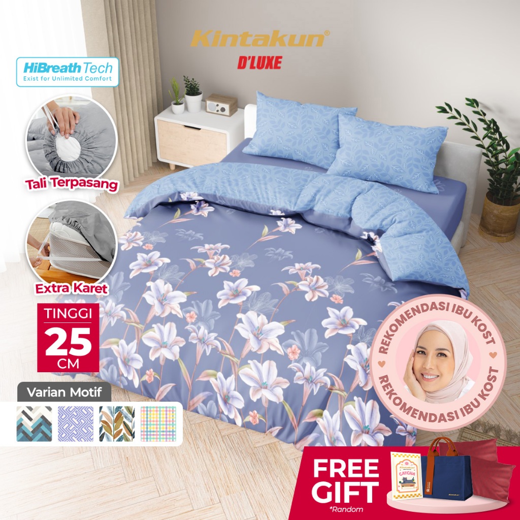 Kintakun Bedcover Set Fitted 160 x 200 Queen DLUXE Aesthetic Bunga Minimalis Microtex T25 cm B2
