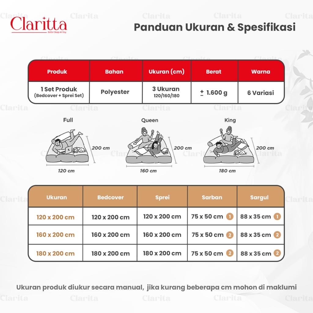 Claritta - Set Sprei Bedcover Jepang Polos Set Selimut Sprei Bahan Microtex & Selimut Saja Polos