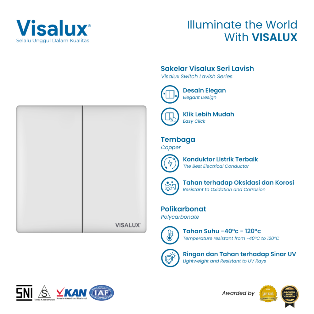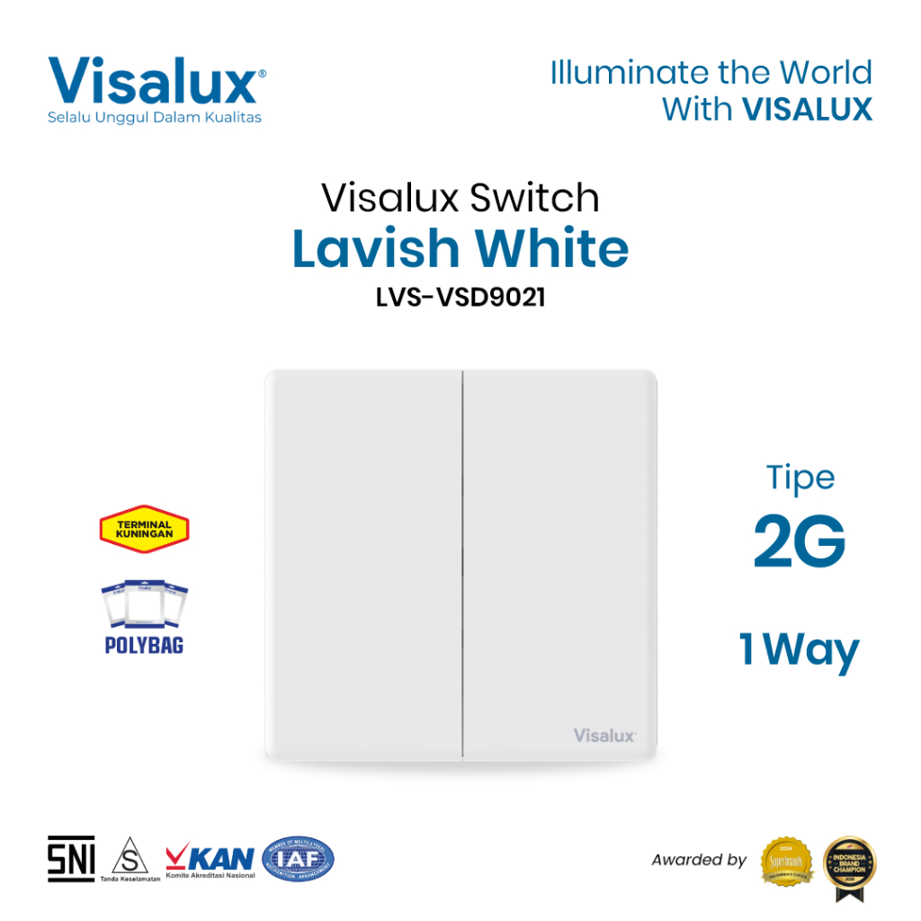 Visalux Saklar Lavish Series - 2G White / Sakelar Premium (LVS-VSD9021)