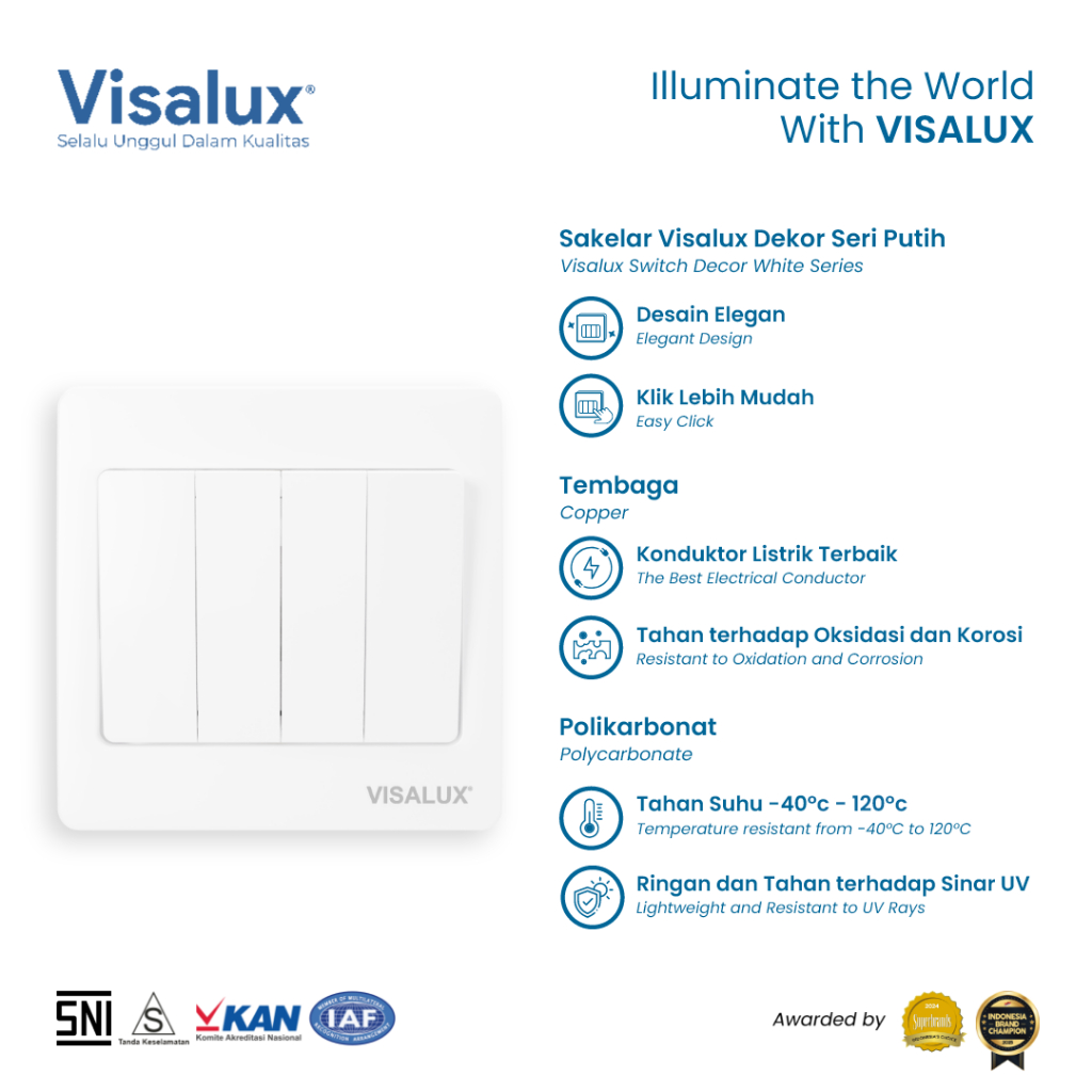 Visalux Saklar Decor Series - 4G White / Sakelar Premium (VSD9041)