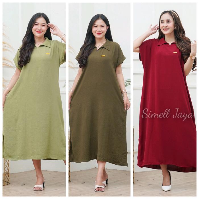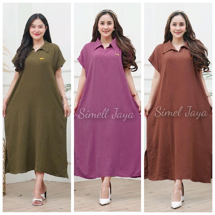 PAKET 100RIBU DAPAT 3 PCS DASTER ALETHA DRESS WANITA CRINKLE BUMIL KERAH - BROWN MARUN COKSU, ALL SIZE LD 125CM
