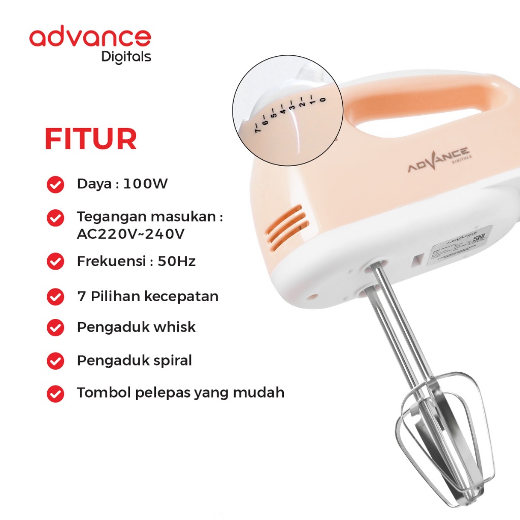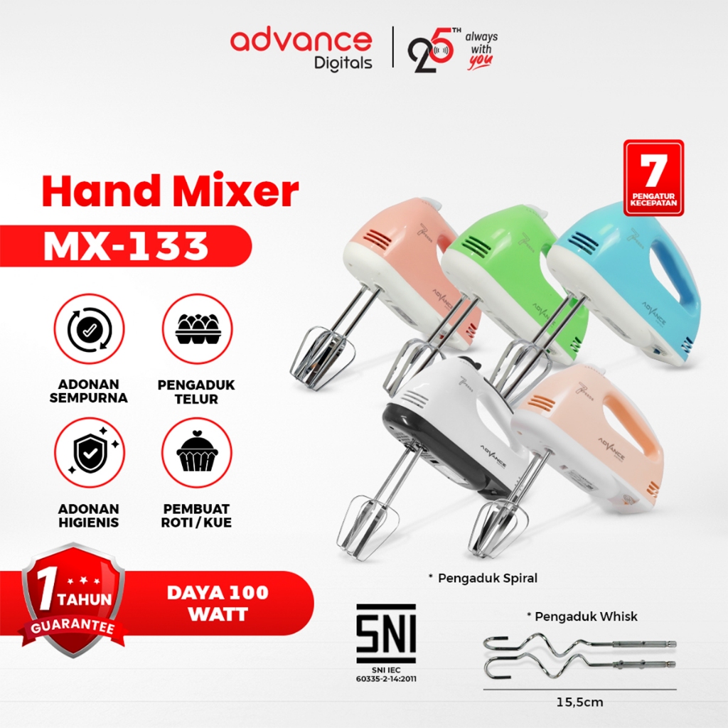 Advance Digitals Hand Mixer MX-133 Alat Pengaduk dengan 7 Kecepatan Otomatis Garansi Resmi Advance