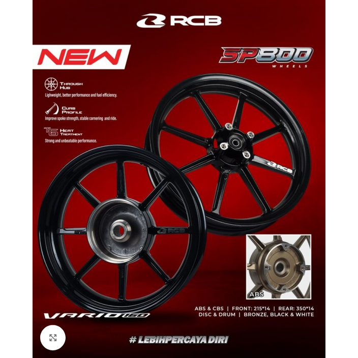 RCB SP800 VELG VARIO160 ABS 215/350 RING 14 PELEG BRONZE/COKLAT; HITAM DOUBLE CAKRAM DEPAN BELAKANG