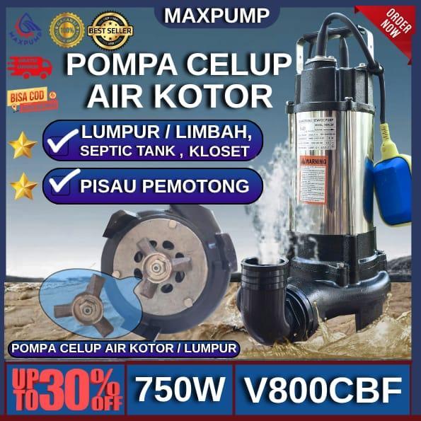 MAXPUMP Pompa Celup Air Kotor 2 Inch Otomatis Blade Pemotong Sedot Banjir Limbah & Kolam Sewage Pump