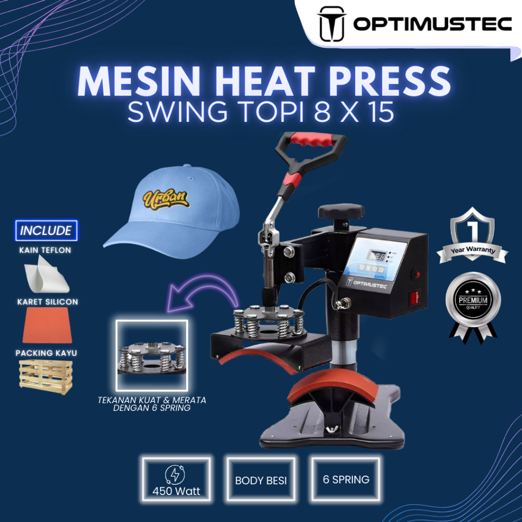 OPTIMUSTEC Mesin Press Sablon Swing 2in1 Logo 15x15 & Topi 8x15 All Varian