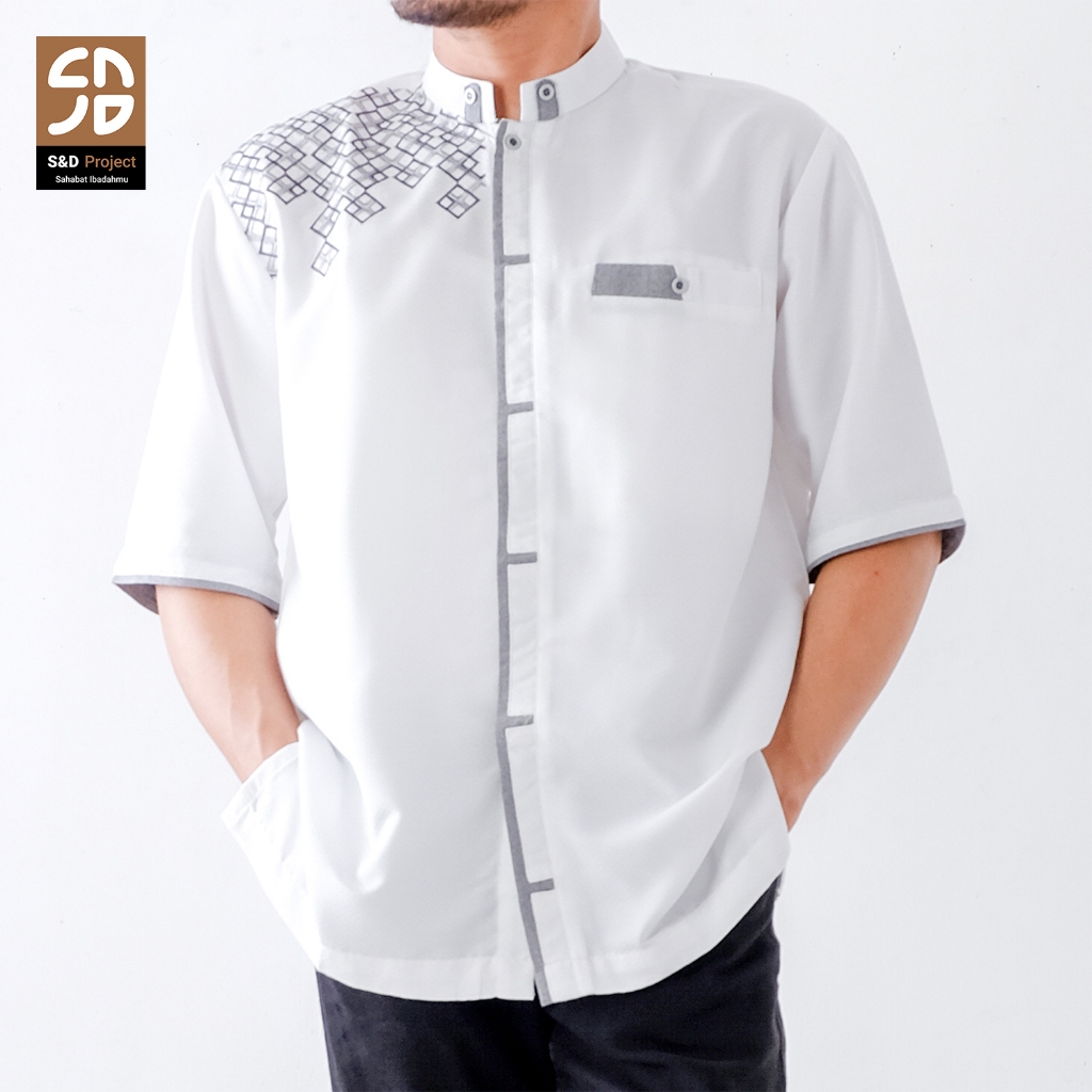 S&D PROJECT Koko Muslim Seri 20 Bordir Polikatun Putih Tulang Jumbo S-4XL Pria Dewasa Lengan Pendek
