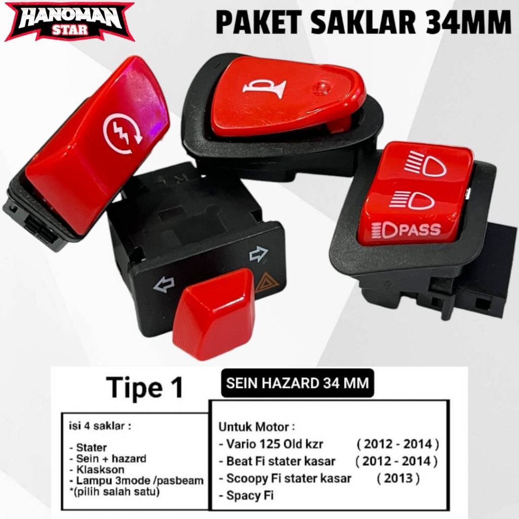 PAKET SAKLAR HONDA MODEL VIETNAM TOMBOL MERAH BEAT POP BEAT ESP BEQAT FI SPACY SCOOPY VARIO DLL HS55