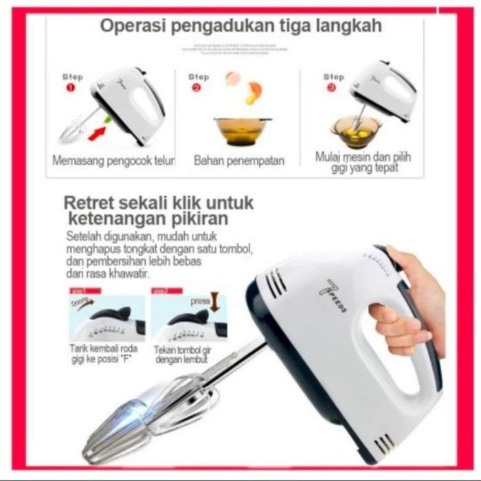 Hand Mixer 7 speed - Kocokan Adonan Telur 7 Speeds Elektrik Serbaguna